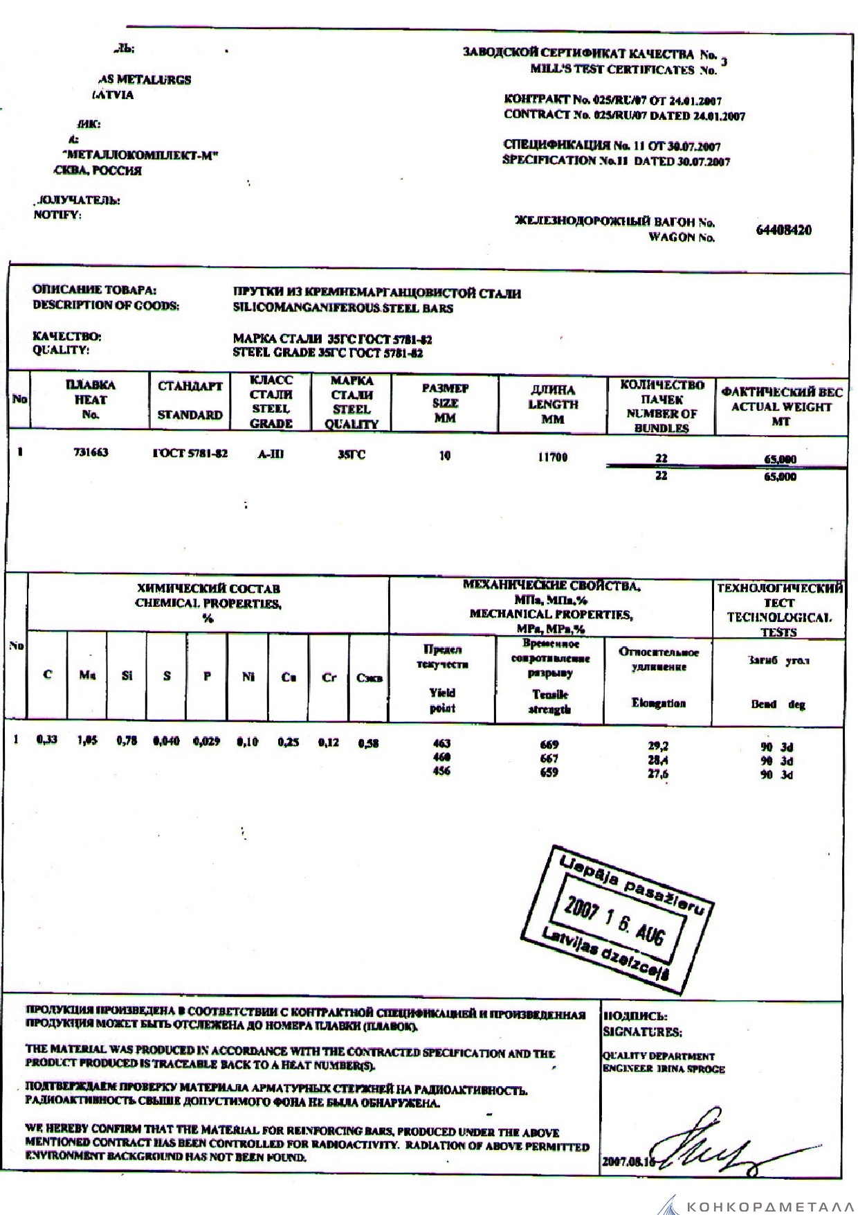 С каждой товарной позицией мы предоставляем все сертификаты и паспорта качества, а также товарно-транспортную накладную.