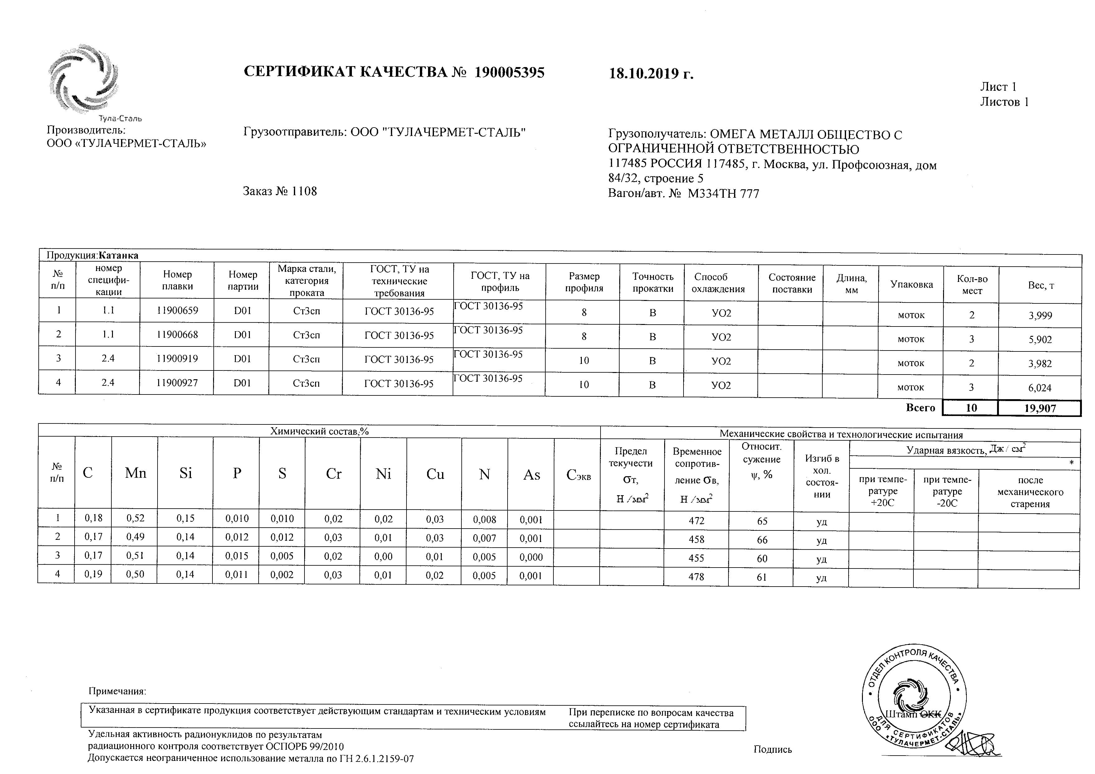 С каждой товарной позицией мы предоставляем все сертификаты и паспорта качества, а также товарно-транспортную накладную.