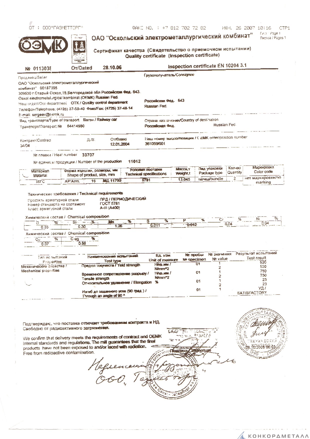 Наша металлобаза занимается комплексными поставками строительных материалов от ведущих производителей в отрасли стройматериалов. Марка у данной арматуры - А3, а диаметр- 16 мм. Выпускается с использованием следующих марок стали: 35ГС. Цены на всю нашу продукцию указаны из расчета за 1 тонну. Возможна резка под необходимый Вам размер.
