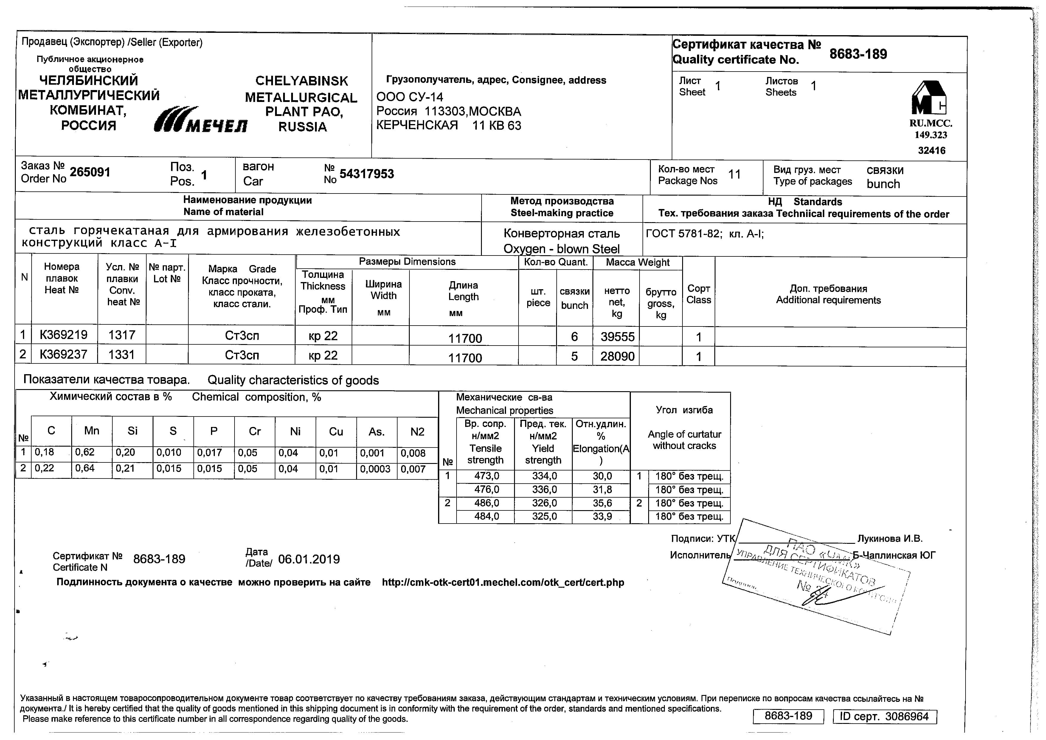 С каждой товарной позицией мы предоставляем все сертификаты и паспорта качества, а также товарно-транспортную накладную.