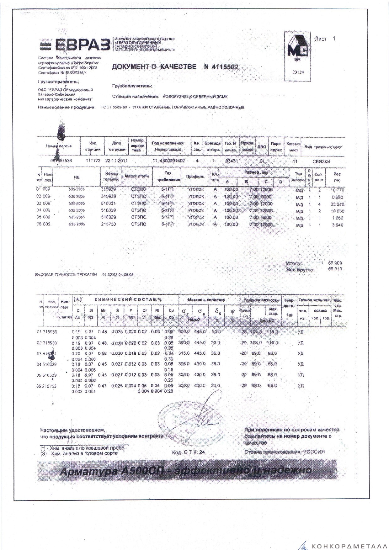 С каждой товарной позицией мы предоставляем все сертификаты и паспорта качества, а также товарно-транспортную накладную.