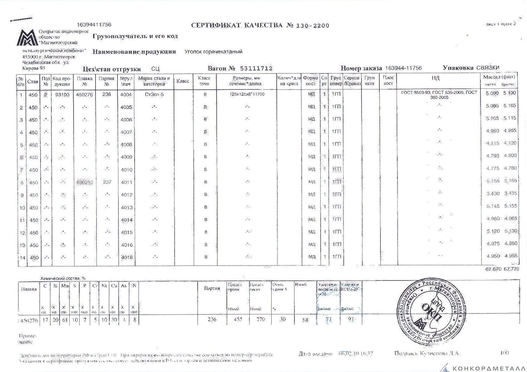 С каждой товарной позицией мы предоставляем все сертификаты и паспорта качества, а также товарно-транспортную накладную.